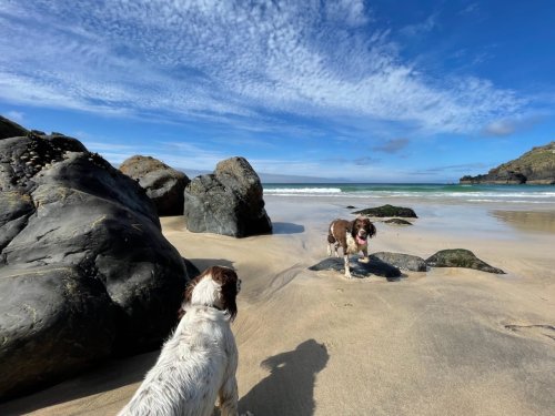 A vast, sandy beach with plenty of space for zoomies! Perranporth welcomes dogs all year round, though in peak summer months (July & August) they must be on a lead from 9am to 5pm. With dunes, rock pools, and even a dog-friendly pub right on the beach (The Watering Hole), it’s a perfect spot for a day out.